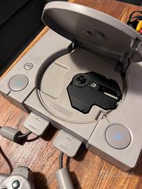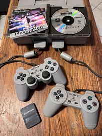 Console testata e perfettamente funzionante, in condizioni estetiche ottime, con: 1 controller analogico. 1 controller classico. Memory card. Cavi di collegamento. Gioco acecombat 3, completo, con custodia non perfetta.