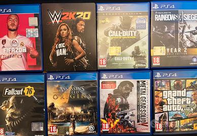 Giochi PS4 originali: Grand Theft Auto 5, RainbowSix Siege, Metal Gear Solid V The Definitive Experience, Call of Duty Infinite Warfare, Assassin's Creed Origins, WWE 2K20, FIFA20, Fallout 76