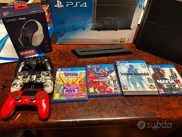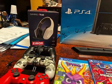Vendo Sony PlayStation 4 Console - 500 GB perfettamente funzionante ,per passaggio a Ps5 con 3 joypad, uno nero, uno rosso e uno camouflage con base verticale per la consolle, 4 giochi inclusi Spyro Trilogy, Pes2020, Rise of Tomb Raider e Mafia 3, tutto completo di cavo alimentazione e cavo Hdmi , cavo ricarica pad e cuffie per ps4 e 2 cuffiette per i pad, tutto a € 250,00. Prezzo non trattabile, no scambi, scrivere solo se veramente interessati grazie. Consegna a mano o spedizione con raccomandata al costo di € 25,00