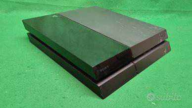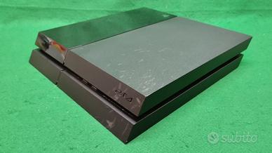 Console Sony PlayStation 4, PS 4, mod. CUH1004A da 500 GB di memoria, con accessori come da foto, perfettamente funzionante ma con qualche problema estetico, alcuni segni sulla parte ruvida e un angolo leggermente urtato con una piccola crepa ma che non ne compromettono il regolare funzionamento.