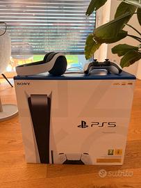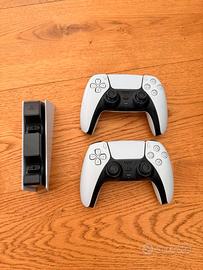 Vendo pacchetto completo PlayStation 5 in ottime condizioni e pienamente funzionante. Include la console PS5 (versione con disco), due controller DualSense originali, la stazione di ricarica DualSense, le cuffie wireless SONY PULSE 3D e il telecomando multimediale originale per PS5.