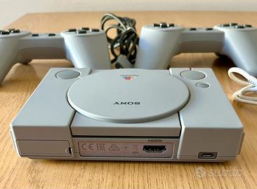 Vendo console Sony PlayStation Classic (modello mini), perfetta per collezionisti e amanti del retrogaming. La console è una replica fedele dell'originale in formato ridotto e include 20 giochi classici pre-installati (tra cui Final Fantasy VII, Tekken 3, Metal Gear Solid e Wild Arms). Il pacchetto include: • Console PlayStation Classic (Modello SCPH-1000R). • 2 Controller originali cablati (collegamento USB). • Cavo di alimentazione USB. • Nota: Richiede un comune alimentatore USB da smartphone o una porta USB della TV per l'accensione e un cavo HDMI per il video.