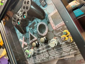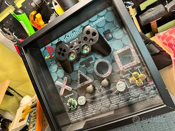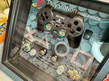 Oggetto da collezione del 1997. Sony Playstation DualShock Controller disassemblato, sfondo stampato a colori su materiale rigido di 3mm, a 1440dpi. Doppia cornice 3D ad esaltarne la Tridimensionalità.