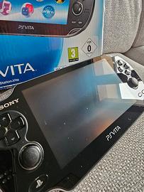 Console Sony Playstation PS Vita OLED PCH-1004 -Con Scatola Custodia CARICATORE. Console in ottime condizioni, con minimi graffi sullo schermo e perfettamente funzionante in tutte le sue parti. Scatola completa di tutti i manuali e carta AR. In buone condizioni, ma la chiusura della scatola è rotta come mostrato in foto.