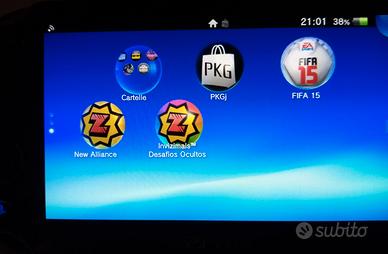 Playstation vita con: - 2 giochi - scheda da 256 gb. - memory card originale Sony Ps vita da 4 gb. - micro sd Psv adaptor - caricabatteria originale Sony Playstation con cavo (Nuovo) per ricaricare la Ps vita I giochi compresi sono FIFA 15 e INVIZIMALS. Tutto in buone condizioni e perfettamente funzionante.