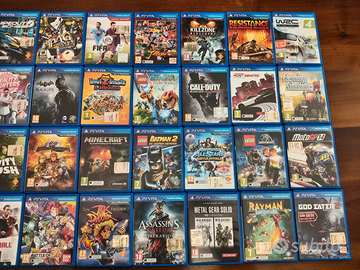ritiro solo a mano lotto di 36 giochi per console Sony PlayStation vita PSvita. tutti funzionanti (vendo in lotto o anche singoli) Asphalt Injection 15 Assassin's creed liberation 15 Batman blackgate15 Borderlands 220 Call of duty declassified 20 Dinasty warriors 8 extreme legends 25 Dragonball z Battle of z 20 Farming simulator 1420 Fifa 15 10 Fifa Football 10 Final Fantasy X/X-2 HD 35 God eater 2 rage burst30 Grand kingdom 35 Gravity rush 30 Invizimals the alliance10 J stars victory 15 Killzone Mercenary 20 Lego Batman 2 15 Lego Chima 15 Lego Jurassic world 15 Lego Movie 15 Little big planet psvita20 Metal gear solid HD collection 55 Minecraft10 Moto gp 14 15 Need for speed most wanted20 Persona 4 golden60 Playstation All stars battle royal 15 Rayman legends 15 Reality fighters 10 Resistance burning skies 20 Soul sacrifice25 The Jak and Dexter Trilogy 45 Wipeout 204825 WRC 415 Yomawari night alone70 YS Memories of celceta 35