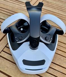 In regalo il PSVR2 Showcase Charge & Display Stand (in fotografia), che consente di tenere in modo ordinato e compatto il visore e i controllers, in carica, quando non utilizzati.