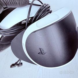 Visore Sony PlayStation VR (PSVR) completo di unità di processamento, PlayStation Camera e cavi. Prodotto testato e perfettamente funzionante. Condizioni estetiche buone, con normali segni di utilizzo sul visore e sui cavi (come da foto). Lenti in buono stato. Pronto all'uso, basta collegarlo alla console. Spedizione veloce entro 24/48h
