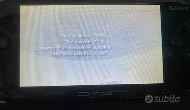 Sony PSP 1004fat perfettamente funzionante in buone condizioni. Batteria 1800mah 7 ore di durata. Include caricabatterie,scheda memoria 2gb,gioco Pes 6, cuffie e custodia morbida tutto originale Sony. Display con lievi segni di usura visibili solo in controluce.