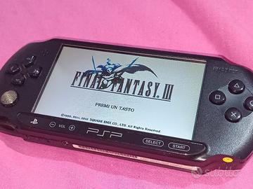 Console portatile Sony PSP in colore nero, completa di caricabatterie e scheda Micro SD.