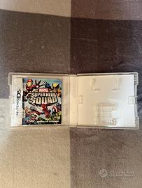 Super Hero Squad per Nintendo DS (solo custodia, senza cartuccia). Condizioni buone, con libretti presenti ma usurati.
