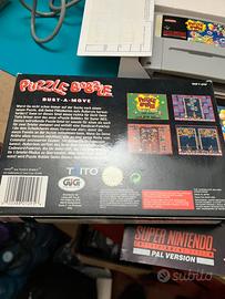 Gioco Super Nintendo puzzle bubble bus-a-move pal gig completo di scatola libretti e scontrino d’acquisto. Ho molti giochi se state cercando qualcosa scrivetemi