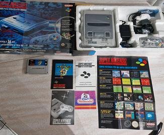 Console Super Nintendo Entertainment System, versione PAL, modello 1chip, GIG, completa di scatola originale. Un pezzo da collezione per gli appassionati, coleccionisti o amatori di retrogame tenuta in modo maniacale completo de tutto il kit comprende. - Console SNES 1chip Versione Pal ⁃ Super Mario World GIG, il piu grande gioco di avventure di Super Mario ⁃ Eccezionale grafica tridimensionale, - 32.000 colori sgargianti con incredibili effetti speciali! - 2 Controller ad alta tecnologia - 1 alimentatore oriainale - 1 cavo RF antenna originale - manuali ,garanzie i poster .