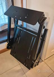 Compatibile con le principali marche: questo supporto per volante da corsa è dotato di fori preforati per adattarsi a volanti, pedali e leve del cambio Logitech, Thrustmaster, Fanatec, Hori e Nintendo Stabile e senza spostamenti: realizzato in acciaio strutturale al carbonio, questo supporto per simulatori di corse rimane saldamente in posizione. Le spesse piastre in acciaio al carbonio e le saldature resistenti creano un abitacolo solido per simulatori di corse Completamente regolabile per il massimo comfort: il supporto del volante è regolabile in altezza e angolazione. Il supporto del cambio può essere posizionato a sinistra o a destra e regolato in altezza Barra antiscivolo: una barra trasversale anteriore alla base impedisce efficacemente alle ruote della sedia di scivolare in avanti. Anche durante le manovre più aggressive, manterrai una posizione di seduta stabile per tutta la sessione di gara Design pieghevole rapido: questo cockpit per simulatore di corse si ripiega facilmente senza bisogno di essere smontato, risparmiando spazio