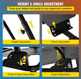 Completamente Regolabile: Il supporto del volante è completamente regolabile in angolazione e altezza (varia da 24,4"-31,5" / 62-80 cm), che offre la migliore esperienza di guida a giocatori di diverse dimensioni. È possibile ruotare le manopole per regolare il volante e la pedaliera in qualsiasi posizione ergonomica, aumentando notevolmente il comfort e la flessibilità.