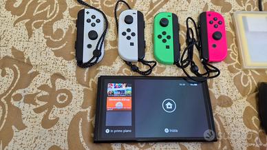 Switch oled bianca con molti accessori originali in ottime condizioni, nelle scatole originali Sono inclusi: -2 joycon aggiuntivi verde e rosa con relative strap e scatola -Stand ricarica joycon e scatola -custodia da viaggio con caricabatterie aggiuntivo -set 3 vetri protettivi schermo di cui 1 già applicato -joycon grip -base bianca per la tv con cavo hdmi La console è stata acquistata nel gennaio 2023 e da allora è stata sempre usata con cura non più di una volta a settimana. Vendo per passaggio alla 2.