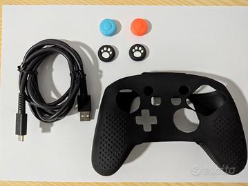 Vendo questo pro controller di prima generazione (ovviamente originale) per nintendo switch in ottime condizioni, perfettamente funzionante, e con il suo cavo di alimentazione e confezione originali. Nell'altra foto potete vedere anche il messaggio nascosto "thx 2 all gamer fans!" che indica appunto che è un controller originale. Nel prezzo includo anche una custodia in silicone nera e quattro gommini per le levette. Vendo solo causa passaggio a nuova generazione di console.