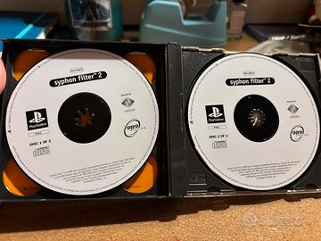 Cofanetto 2 giochi originali per PlayStation Ps1. Il cofanetto contiene Syphon Filter 2 e A Sangue Freddo, entrambi in versione italiana. Presente anche il manuale. La custodia presenta molti segni del tempo e graffi ma e’ integra, i dischi, chi piu’ chi meno presentano segni d’usura ma sono testati e perfettamente funzionanti.