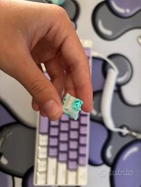 Tastiera da gaming meccanica, ha gli switch azzurrini con un suono cremoso, gli rgb con tantissimi effetti di luci, gli switch sono rimovibili a caldo così la potete personalizzare come volete, ha alcuni tasti viola e la sua scatola originale con degli switch di ricambio, nella confezione c’è pure un rimuovi tasti e switch. compatibile con la playstation 4/5, al pc, all’xbox. insieme alla tastiera c’è pure il suo cavetto arricciato bianco e il suo tappetino viola XXL grande 40cmX90cm viola. Per altre info cont