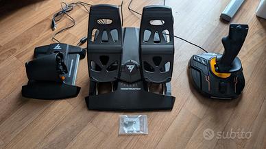 Acquistato il 13 febbraio 2026, vendo usato pochissimo kit per simulatore volo. REGALO kit molle aggiuntive per la pedaliera!! Di seguito la descrizione tecnica: Il T.16000M FCS FLIGHT PACK È composto dal joystick di volo T.16000M FCS (Flight Control System) e dalla manetta TWCS (Thrustmaster Weapon Control System) e dal TFRP (Thrustmaster Flight Rudder Pedals). Il T.16000M FCS FLIGHT PACK è compatibile con PC via USB in Windows 10, 8, 7 e Vista (32-bit e 64-bit). Rispetto agli attuali sistemi, il T.16000M FCS ti offre un maggior livello di precisione, che non diminuisce nel tempo, grazie alla tecnologia H.E.A.R.T del joystick (brevetto U.S.A. US08471815): una tecnologia basata su sensori magnetici 3D (Hall Effect), per una premiata precisione. La tecnologia S.M.A.R.T (Sliding Motion Advanced Rail Tracks) della manetta e del timone a pedali, offre un esclusivo sistema a scorrimento su binari, per un movimento a scorrimento perfettamente fluido e preciso. Il software T.A.R.G.E.T ti permette di caricare e creare mappature specifiche per ciascun gioco.