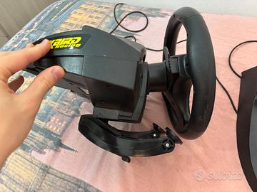 vendo Thrusaster T80 Racing Wheel, per inulitizzo, in ottime condizioni, tutto perfettamente funzionante. Utilizzabile per PS3/PS4/PC ( con apposito tastino per cambiare console). presenta cambio al volante con palette. Per attaccarlo alla superficie di utilizzo è presente nella parte inferiore del volante una morsa regolabile da una vite girevole. La pedaliera presenta solo accelleratore e freno. Per collegarlo alla console d’utilizzo è presente il cavo USB. l’articolo è privo di scatola e manuale.