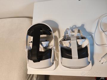 Vendo per inutilizzo due Meta Quest 3S da 128GB (l'ultimo modello uscito con Mixed Reality a colori) in condizioni perfette, praticamente come nuovi. Li ho tenuti con tantissima cura, le lenti sono immacolate e non hanno mai preso luce solare diretta. Uno dei due visori è già configurato con il cinturino KIWI Design K4 Boost, che è una svolta: ha la batteria integrata che raddoppia la durata delle sessioni e bilancia il peso sulla testa, rendendolo comodissimo. L'altro ha invece il suo cinturino originale a Y, molto leggero. Insieme ai visori do anche i 4 controller Touch Plus, i due stand bianchi che vedete in foto per tenerli ordinati sulla scrivania, i cavi di ricarica e i panni in microfibra per pulire le lenti.