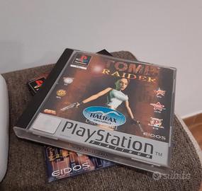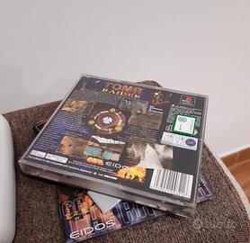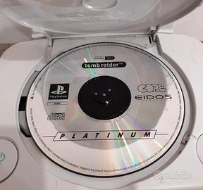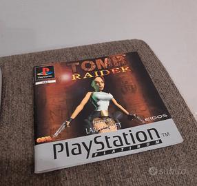 Gioco per Playstation 1 e Playstation One, Tomb Raider Lara Croft versione Platinum, disco con custodia rigida, copertina e libretto di istruzioni.