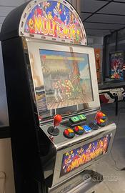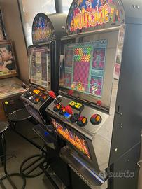 In un unico videogioco moderno da bar Postazione a 2 giocatori con 6 pulsanti più start per giocatore, così da poter eseguire tutte le mosse nei giochi di “street fighter” 5000 giochi Arcade dai primi di fine anni 70 in bianco e nero come “Space Invaders” o “Asteroid” o “Break out” o”flipper” Poi a i primi a colori come “ Pac Man” o “Galaga” E i più moderni come “Tetris” o “Bubble Bobble” o tutti i “ Metal Slug” Funzione con tasto pausa. Possibilità di ricerca del gioco preferito tramite vari genere o lettere del nome. possibilità di salvaggio progressi. Lista degli ultimi 100 giocati. Presa USB per aggiungere giochi. Monitor LCD con vetro di protezione Larghezza 46 cm Profondità 43 cm Altezza 175cm ( 155 cm smontando testatina tonda in alto ) Posso consegnare in zona Bologna e dintorni senza sovrapprezzo.