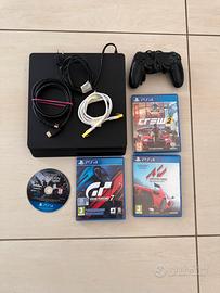Vendo Logitech con cambio e pedaliera piu stuttura , ps 4 slim completo di jeypad originale e cavi + goichi come da foto , vedo x inutilizzo non usata piu di 15 volte , tutto perfettamente funzionante e tenuta in modo eccellente, non spedisco , contattatemi e non rimanete delusi , massima serieta a vostra disposizione.