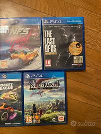 Vendo 5 giochi per PlayStation 4 in ottime condizioni. I titoli inclusi sono: God of War Ragnarök, NFS Heat, Ni no Kuni: Il Destino di un Regno, Rocket League (Collector's Edition) e The Last of Us Remastered. - Tutti i giochi sono completi di custodia. - Sono stati ben conservati