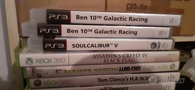 PER PS3 1. *Ben 10 Galactic Racer (sigillato)*: €15 2. *Soul Calibur 5*: €15 PER XBOX360 3. *Assassin's Creed Black Flag*: €15 4. *Call of Duty: Modern Warfare 3*: € 15 5. *Tom Clancy's HAWX*: € 10 6. *Flashpoint: Red River*: € 10 7. *Homefront*: € 10 8. *GTA V*: €15 9. *GTA IV (Classic)*: €15 10. *WRC 4*: €10 11. *Call of Duty: Black Ops*: €15 (ESAURITO) 12. *Sniper 2*: € 10 13. *Medal of Honor Limited Edition (esaurito)*: €30 (prezzo più alto per la rarità) - ESAURITO 14. *Brothers in Arms: Hell’s Highway*: €10 15. *Call of Duty: World at War*: €15 16. *Moto GP 08 (sigillato)*: €20 17. *Assassin's Creed Brotherhood*: €15 18. *Far Cry 4*: €15 OTTIME CONDIZIONI - ADATTI A COLLEZIONISTI. IL PREZZO RISPECCHIA LE CONDIZIONI DEI TITOLI