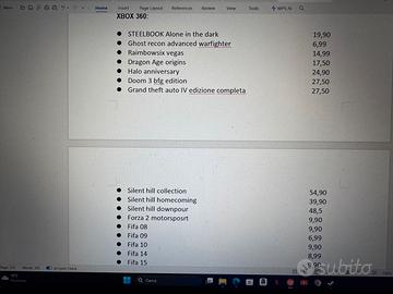Vendo singolarmente o a gruppi tantissimi giochi xbox 360, molti nemmeno giocati e tutti in ottime condizioni! Prezzi (in foto) e foto ulteriori dei singoli videogiochi in privato.