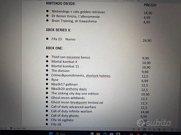 Vendo singolarmente o a blocchi tantissimi giochi xbox one, molti nemmeno giocati e tutti in ottime condizioni! Prezzi (in foto) e foto ulteriori dei singoli videogiochi in privato. Unico gioco xbox series x fifa 23 nuovo, mai usato, causa acquisto sbagliato.