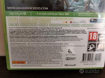 Vendo videogioco "Assassin's Creed 3" (anno 2012) per Xbox 360: i due dischi del videogame sono in buone condizioni e contenuti nella loro custodia originale con all'interno il libretto. Questo è il terzo degli Assassin's Creed: una delle saghe videoludiche più apprezzate degli ultimi anni, da cui hanno realizzato film, fumetti e molto altro. Lingue di gioco: italiano. PEGI 18+ Per la spedizione, a vostro carico, a voi la scelta del metodo. Se scegliete metodi non tracciabili, in caso di smarrimento del pacco, non mi assumo responsabilità. Disponibile anche spedizione con metodi proposti da Subito. Per il pagamento accetto bonifico bancario, PayPal, Satispay o altri metodi da concordare. ATTENZIONE: la consegna a mano è disponibile SOLO per acquisti complessivi a partire da 15,00 € ed ESCLUSIVAMENTE con pagamento in anticipo tramite Paypal o Satispay. Per domande, chiarimenti e qualsiasi cosa vi passi per la testa riguardo l'oggetto in vendita, contattatemi!