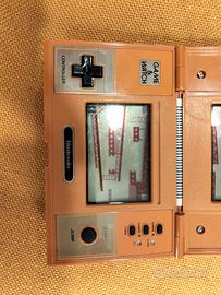 vendo videogioco della Nintendo Game & Watch di Donkey Kong Multi Screen (modello DK-52), uscito nel 1982. È tenuto in perfette condizioni ed è utilizzabile anche per giocare in quanto l'inserto delle batterie è perfetto. L'unica pecca sono dei leggeri segni sulla superficie in alluminio.