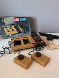 Storica console videogioco Pong di prima generazione Polycon mod:C4003, vintage anni’70. Made in Honk Kong. Con scatola originale( vissuta). Usata e con segni di vissuto ma in buone condizioni estetiche. Mancante dell’alimentazione vendo come non testata. Esattamente tutto quello che si vede in foto. Misura scatola 34x24x12cm. Articolo da collezione per seri collezionisti del genere.