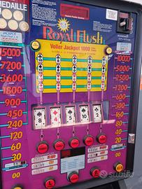 videopoker vintage da sala giochi con carte a scorrimento, perfettamente funzionante ma senza chiave di apertura macchina. all'interno ci sono ancora più di 20 pezzi da 500 lire. Il gioco funziona perfettamente, tutte le luci vanno e i meccanismi sono funzionanti