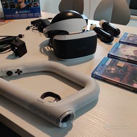vendo visore PlayStation VR per PS4 e PS5. ultima versione v2 "cuh-zvr2" con centralina video aggiornata, CAM seconda versione e adattatore PS5. visore perfetto in tutto completo con due PlayStation move, fucile, cuffie, cavi originali e tre giochi.