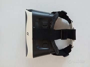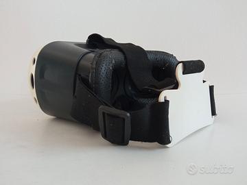 Visore Cellularline Zion per realtà virtuale 3D a 360°, utilizzabile per videogiochi. Il rivestimento della gommapiuma aderente al viso è leggermente scrostato e uno degli elastici da fissare intorno alla testa è stato aggiustato.