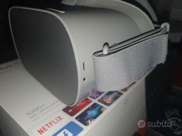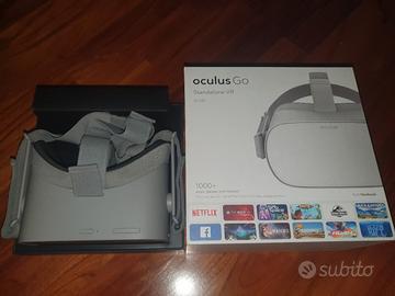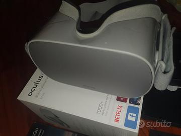 vendo causa inutilizzo ottimo visore realtà aumentata VR, Meta Oculus Quest go, usato pochissimo e tenuto ottimamente ancora con pellicole protettive applicate, completo di tutta la dotazione originale conservata, scatolo cavo controller touch e fisico, adattatore occhiali, laccetto, panno pulizia,tutto originale oculus come da foto.
