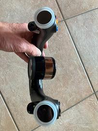 Il volante contiene un motorino per restituire feedback di pilotaggio ed è dotato di 2 pulsanti ad azionamento proporzionale che si comandano con gli indici (perfetti per dosare ad esempio acceleratore e freno).