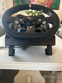 Volante Logitech G920/G29 con ritorno di forza a due motori, leve del cambio in acciaio inox e volante in pelle. Pedaliera con pedali acceleratore, freno e frizione in acciaio inox. Completo di pannello di fissaggio realizzato a misura. Compatibile con Xbox Series X/S Xbox One e Pc