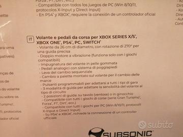 Volante e pedali da corsa per XBOX SERIES X/S, XBOX ONE, PS4, PC E SWITCH. Nuovo, ma utilizzato, imballaggio originale