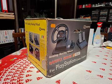 Come da titolo vendo volante con pomello cambio e pedali per consolle ps1, scatola originale con strappo sull'angolo. Marca Nextec, colore nero.