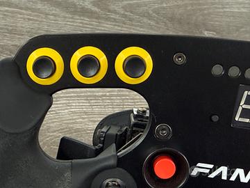Volante fanatec f1 v1 con qr1 in metallo e mod paddle magnetici perfettamente funzionante feedback perfetto dei tasti ,unico danno estetico sono 2 cerchi gialli intorno ai tasti ma il problema e solo visivo