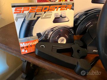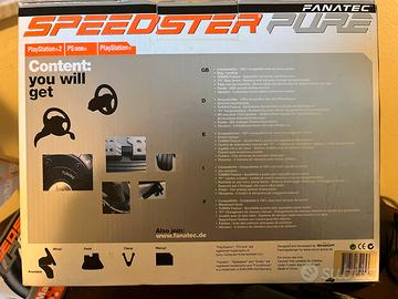 Volante Fanatec modello Speedster Pure compatibile con Playstation 1,2 e One completo di pedaliera ed accessori per il fissaggio e scatola originale.