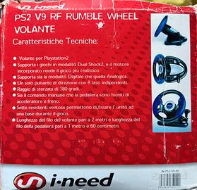 Volante per PlayStation 2 modello V9 RF Rumble Wheel. Wireless, con vibrazione e pedaliera. Pertetto per Gran Turismo, NFS, F1 ecc.