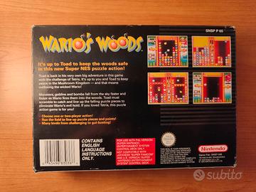 Vendo Wario's Woods per Super Nintendo Entertainment System (SNES). Completo di scatola, manuale e inserti, condizioni generali molto buone.