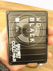 WD_BLACK P10 Game Drive, un hard disk esterno meccanico portatile prodotto da Western Digital in una speciale edizione a tema Call of Duty: Black Ops Cold War. Utilizzo: Progettato per espandere lo spazio di archiviazione su PC, PlayStation 4 , PlayStation 5 o Xbox One, permettendo di salvare numerosi titoli e aggiornamenti. Capacità: Disponibile 2 TB, con la versione in edizione speciale Call of Duty Performance: Trattandosi di un HDD meccanico da 2.5", offre velocità di trasferimento dati ottimale, rendendolo adatto per l'archiviazione di giochi.