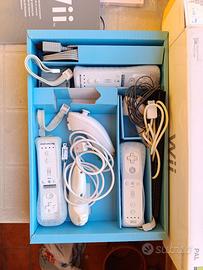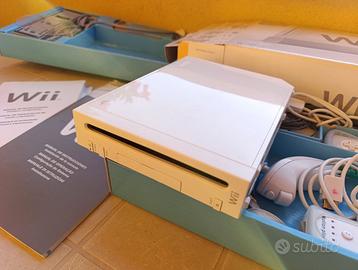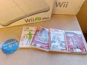 Wii e Balance Board completa di imballo e manuali di istruzioni originali. In dotazione 3 controller, di cui 2 motion plus, completi di nunchuk. Giochi: Wii sports, Wii Fit plus, SuperMario Bros, Mario Kart, NBA2K13